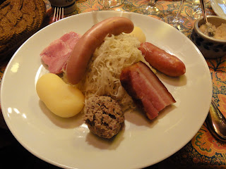 La choucroute aux 3 poissons (flétan, saumon, haddock, et dans cet ordre précis!): c'est un délice!! Elle est apparemment de renommée mondiale à la Maison Kammerzell. Beaucoup moins bourrative que la choucroute traditionnelle, dont je ne suis pas une adepte inconditionnelle.