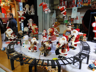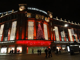 Tous les coins de rue sont décorés, les pâtisseries regorgent de bonnes choses à manger (pain d'épices, bûches de Noël, etc, etc, et vive le kugelhopf!), les gens se baladent avec un vin chaud dans la main, bref c'est vraiment Noël.
